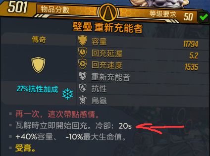为的是护盾瓦解时立即充满护盾值,每20秒能触发一次。