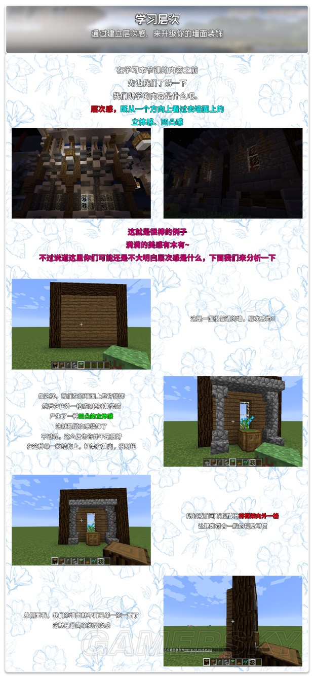 《我的世界》中许多刚刚接触这款游戏的玩家在建筑的结构和层次方面不是很了解,所以建造出来的建筑都很单一死板,没有层次感。今天就为大家分享一篇“暗影-梦”讲解的《我的世界》建筑层次作用介绍及用法解析,一起来了解一下吧。