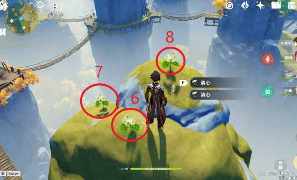 第一个地方直接在琥牢山传送点起步,按路线飞到山顶就行,最后神像周围也有清心。