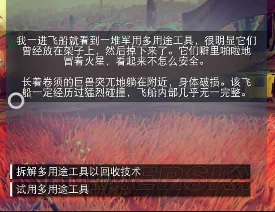 恩,没错,给你一个故事,然后再给你个选项!根本就没有实时事件!全是文字性描述~我TMD在玩文字游戏吗?你能在画面上把 巨兽,飞船内部,和多用途工具表现出来放在地上给我们自己去拿吗?我擦!