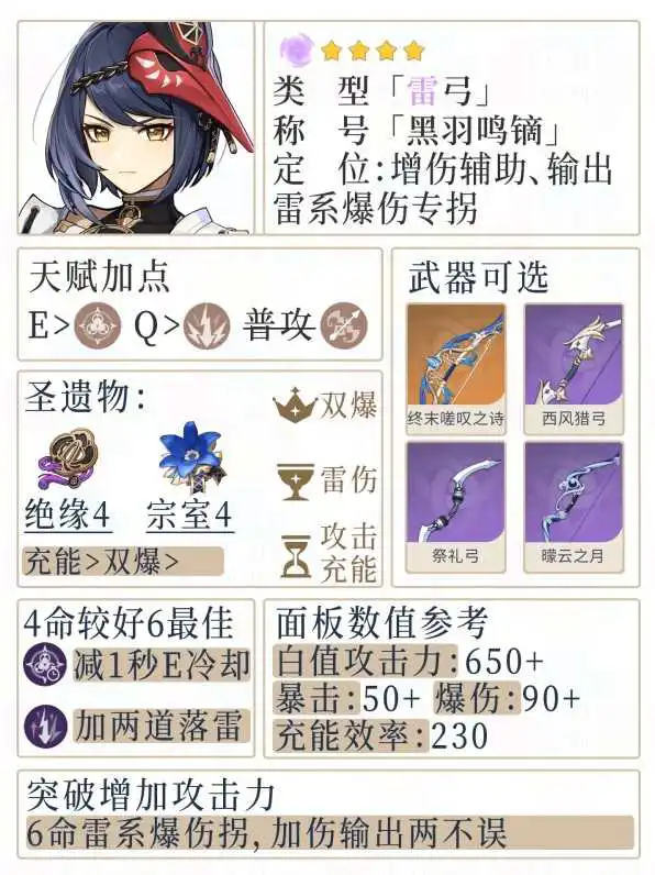 正文 《原神》九条裟罗武器及圣遗物推荐 游戏引路人 /2025-01-13 14:28:11 /63 浏览量 0113 《原神》中九条裟罗是雷系的四星角色,她的武器装备该怎么搭配呢,想要了解的玩家请看下面“千羽绝响”带来的《原神》九条裟罗武器及圣遗物推荐,希望能够帮助大家。 耿耿伏枕不能眠,披衣出户步东西。 -- 展开阅读全文 --