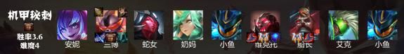 机甲秘刺,平均排名只有3.6,在所有上榜运营体系最低,但是所有上榜运营体系都是9人口阵容,也就是目前版本你几乎玩任何阵容除了赌狗易剑联8人口都是一定掉分的,而机甲秘刺是一个八人口上分阵容,这阵容的苟分能力可见一斑,基本上只要8人口成了,这分基本上就不掉了,9人口,名次还能抬一抬,就是不太好吃鸡。