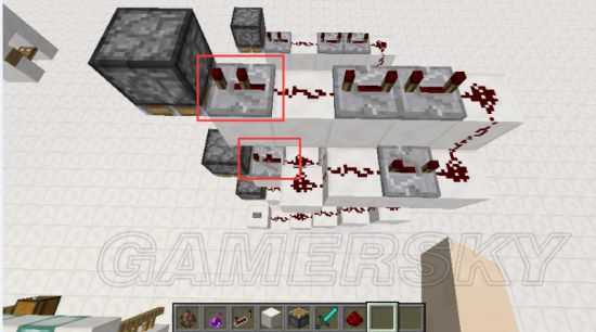 接着是第二层,注意中继器延迟设定在0.4秒。