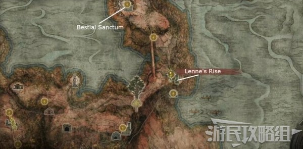 首先来到宁姆格福的玛莉卡第三教堂,沿着河流往西走,找到一个传送门,直接传送到盖利德的野兽神殿,一直往南跑就可以抵达雷恩魔法师塔。