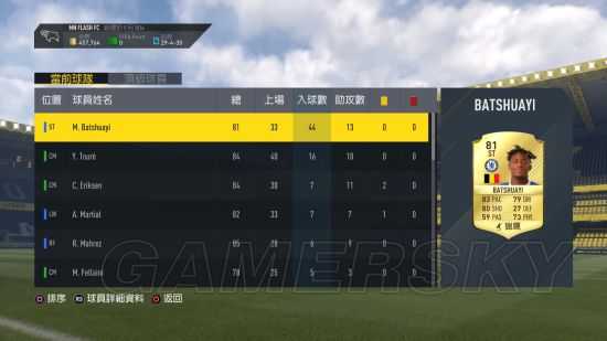 阵型是433-4,可以发现我两个主力边锋马夏尔和马赫雷斯进球不多,并且还没助攻多,所以这个中锋基本承担了大部分进球任务。巴特舒亚伊这张卡目前给我带来的效益已经远远不止买他花的6700了。本身我的打法传中占了相当重要的一部分,所以身高强壮头球这些就比较重要,巴特舒亚伊抢点我真的非常满意,头球数值73很一般,但是头球真心不错,印象中已经至少有10+头球破门了。 这卡数值81,但是关键数据真心不错,84 81双速对前锋来说属于中等偏上,83射术和站位 4星逆足对一个1万左右的前锋来说也很不错,实战中我对他射门非常满意,不期望他能进一些世界波,但是出机会能稳定打进就是好前锋。另外还有84灵活82强壮 185身高。 要说缺点的话,第一体力65,作为一个攻防参与度21的ST来说,65体力还是可以用的,但是确实低些。第二是传球数值太低,但是实战中感觉不到传球有这么差,13个助攻,队里第一助攻数也可以说明传球不至于那么惨。
