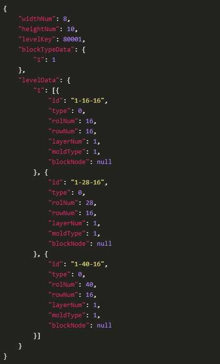 levelData 层卡片数据。每层元素的数据量总和,要与blockTypeData的卡片数量一致。