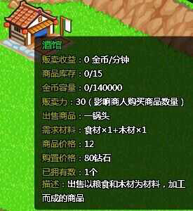 出售以粮食和矿石为材料,加工而成的商品,可以贩卖白药、膏药、大力丸。