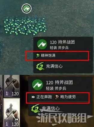 增加疲劳会降低单位的移动速度和战斗力。行走不会影响疲劳。