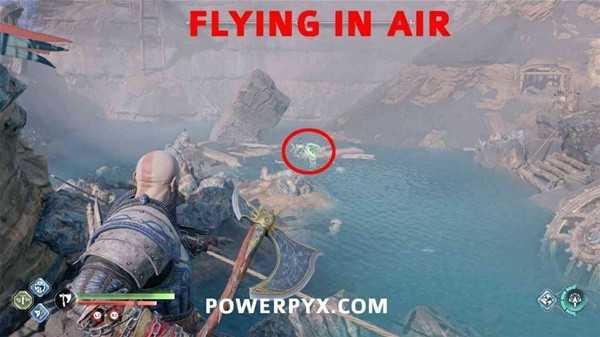 来到起重机附近,从小路尽头跳下去,用长矛制造荡杆,继续前进。然后就可以看到渡鸦在前边的水域上空盘旋,看准时机把它打下来即可。