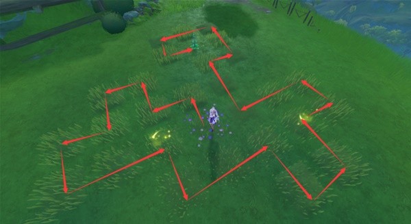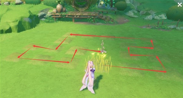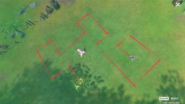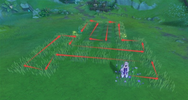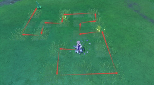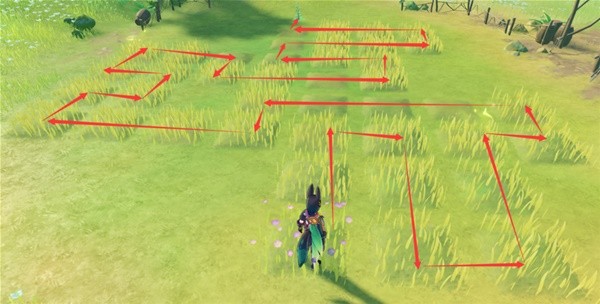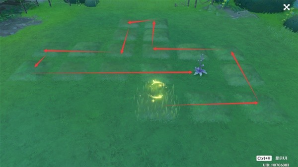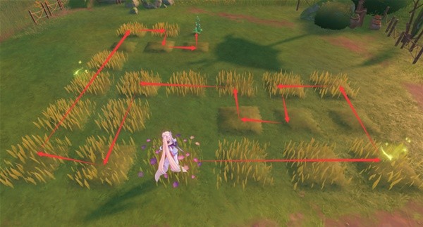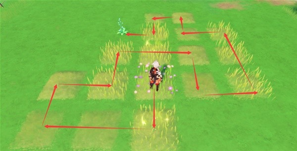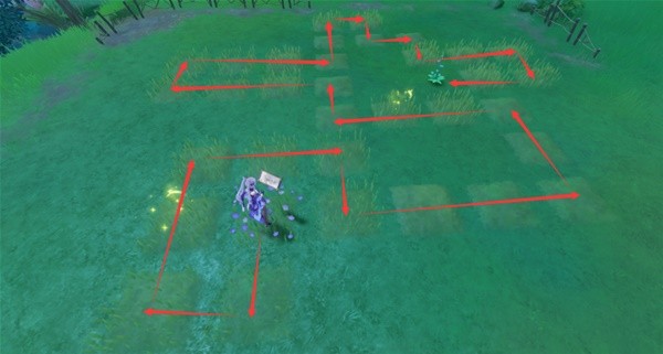 和之前版本出现的踩格子,连连看都是相同的,踩在第一处发光的草坪上,然后触发其他草坪生长,我们要将每一块草坪都踩一下前进>然后触发其他草坪生长>踩草坪>前进>获得道具