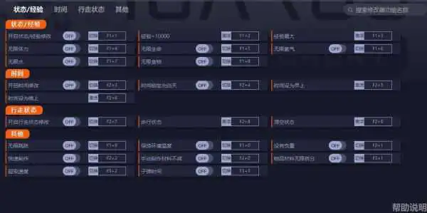 3.开启修改器各主初始项再使用各子修改项[无主初始项则不用开启][主初始项:如开启...修改]。