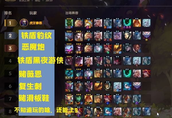 首先说明:这套阵容属于6级赌狗阵容,开局火男且装备时候才考虑玩。阵容吃分强度非常高,但想登顶吃鸡需要比较胡,烂分王阵容。