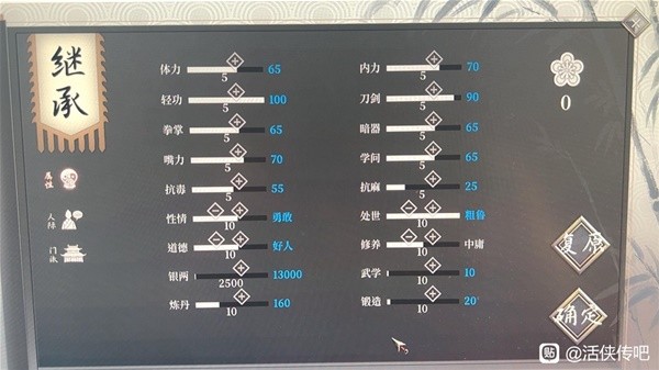 《活侠传》二周目侠可以通过卡BUG的方式增加初始各门派的好感点数,那么要如何操作呢?请看下面由“一直在路上HOLD”带来的《活侠传》二周目卡初始点数BUG教学,希望对大家有用。