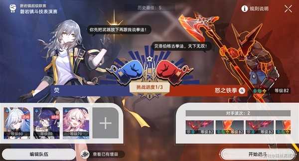 这里我带了一个三月七,提高一下容错率,关键时候还可以补个冻结,三月七遗器建议带个速度鞋和充能绳。这里对手波次为两波,所以我们必须要在一轮内解决1波。