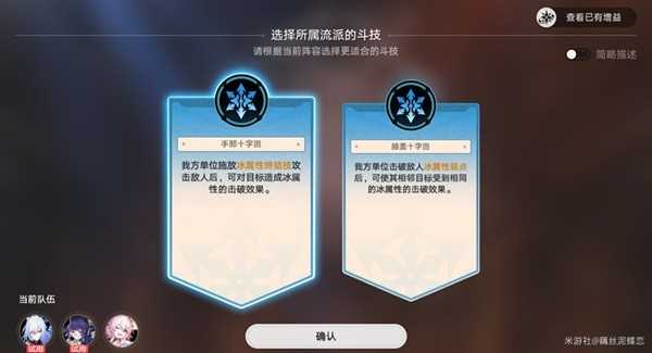第一轮的话,冻结状态下的敌人不一定要让镜流来打,适用的佩拉触发buff伤害也很高的。然后二选一增益buff,我们选手部十字固。