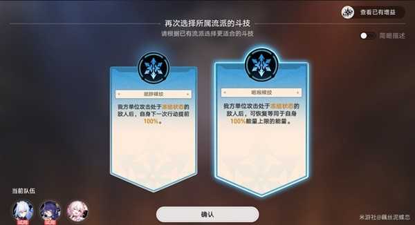 在斗技表演赛中,开拓者选择参加赛事后,会获得当前流派的核心斗技,击败对手后可以在当前流派的两个增强斗技中选择一个。