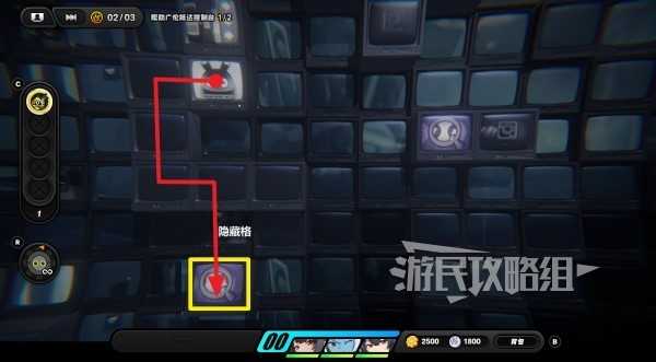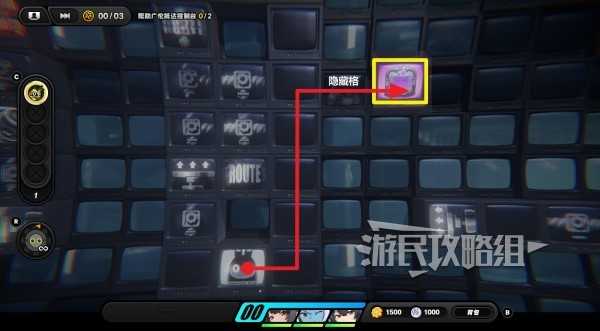 炸掉砖块和以骸后,往右上方走,可以看到有一个隐藏格,在隐藏格右侧一格的位置有一个紫色物资。