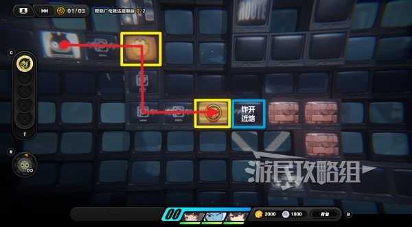 与放大镜图标互动后,右侧会出现新的路,拾取路上的齿轮硬币和观测数据。如下图所示篮框处可以使用炸弹炸掉砖块,可以开一条近路,如果后面走错路的话可以从这里快速返回。