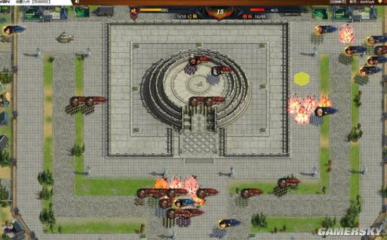这个关卡,只能在城外用炮车清左兵营。右兵营刷小怪有BUG,小怪刷在城墙中间,那个位置可以跳出城外攻击城外的炮车。