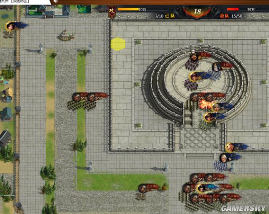 第18回合:盟友吕布用冲锋进里面吸引火力,两个守门的盾兵肯定会绕开。下回合主力姜维吕布队才能进里面刺杀董卓。
