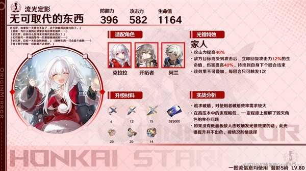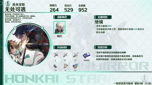 装备者释放战技、普攻、终结技可叠层提升自己的攻击力、效果较为通用,适合大部分毁灭命途角色装备。