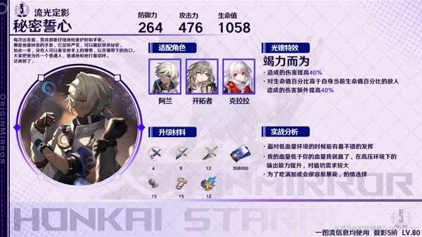 装备者释放攻击可以叠层提升自己的攻击力、击破敌方弱点还可以获得增伤,适合削韧能力强的角色装备。