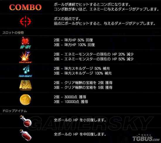 COMBO:球连续击中就会积累COMBO,COMBO数越多对敌人造成伤害越高。
