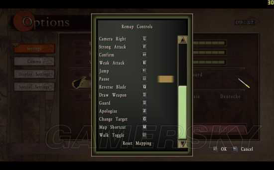 拔刀改成R,防御改成T,跳跃改成空格,暂停改成ESC,这样就比较符合大众PC动作游戏的操作风格。