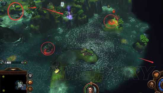 如图所示,下图大红圈标注的地图就可以接这个任务,与此同时还有“海岛堡垒”的任务。按照箭头所指的,占据一处哨塔,可以查看到右下角的三处海盗。