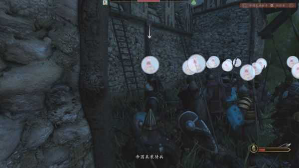 为了让武器不卡刀,记得军队站位要留出来一定宽度。截图里理想位置是让士兵站在和突出城墙平行的位置。