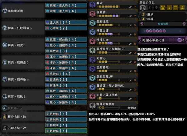 这套就一个常规回避弩配装,会心堆满了,没有续航,所以也没配无伤。