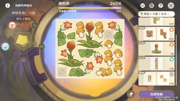 如果第一轮研制的药剂功效和特征有没有满足的要求,继续尝试新的搭配。都满足的条件下大家就以提高药材的经验等级为目标,尤其是那些前面基本上没有怎么用到的药材还有新解锁的药材,因为你不清楚下一个阶段是否就要用到。在这个阶段,我们可以完成目标2和目标9。