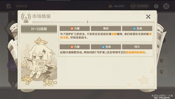 通过市场情报,我们猜测千岩军的需求需要具备生命和力量功效,同时要具备镇定的特征。阿如村的守卫的需求需要具备力量的功效,同时可能要具备持久的特征。