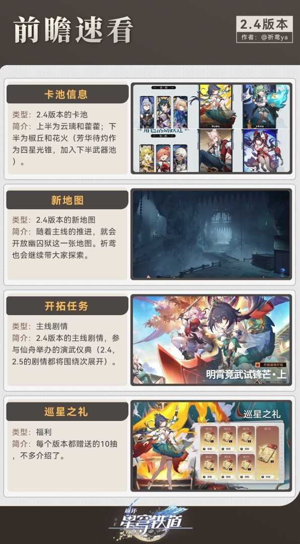 正文 2025年《崩坏星穹铁道》2.4版本更新介绍 2.4版本活动一览 闪亮小编 /2025-11-28 09:01:43 /2 浏览量 1128 《崩坏星穹铁道》2.4版本即将更新,很多玩家想要知道新版本中有哪些活动,下面请看“祈鸢ya”带来的《崩坏星穹铁道》2.4版本更新介绍,希望能够帮助大家。 闲将柳带,细结同心。 -- 展开阅读全文 --