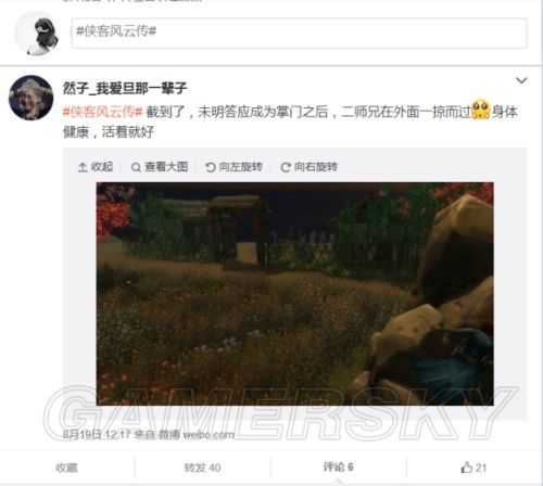《侠客风云传》逍遥掌门结局中,在东方未名答应成为掌门之后,其实大家最关心还是性格外刚内柔的二师兄下落,今天小编带来“然子_我爱旦那一辈子”分享的《侠客风云传》逍遥掌门结局二师兄彩蛋,感兴趣的玩家跟小编一起来看吧。