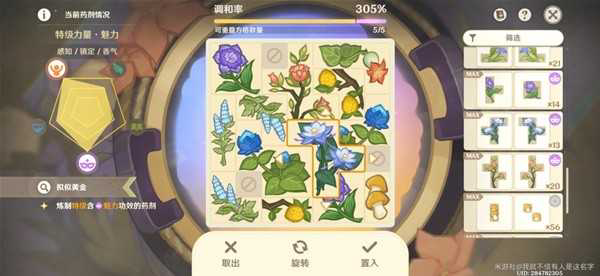 注:所有药材需要全部满级,黄线那个药材是叠加上去的。