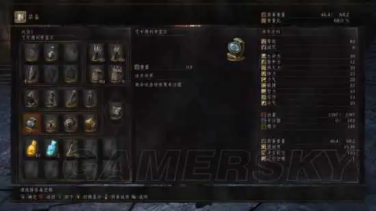 晾衣长刀不说了给了东人遗灰(打完法王)后的老婆婆出售,PVP,PVE都是强力武器。黑骑士盾在中盾里面防御非常高,突出的火防能应付很多场合。