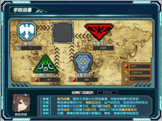 黑鹰学院:比较喜爱金钱的学院,可通过金币招募少女机师;