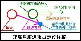 腐烂能对屠夫周围的敌方单位造成20%的减速。但因为屠夫攻击后摇比较长(指攻击到对方后收手的时间),新手开腐烂追击时尽量不要进行普通攻击。想做普通攻击的朋友注意如图所示进行走位。