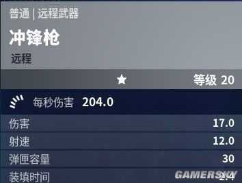 俗称MP5,能力较差弹匣容量只有30,,高射速类武器弹匣容量最少的武器。每秒伤害是高射速类武器最关键评判标准,冲锋枪在这类枪械中表现并不好。这把枪相比与鼓枪的优点在于弹道稳定。