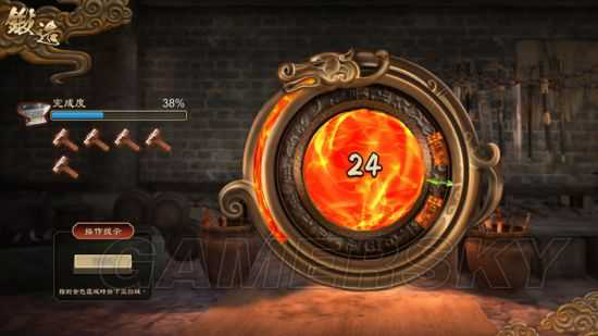 玩家随着炉火的中央指针的转动敲击捶打,打击越准成品品质越好