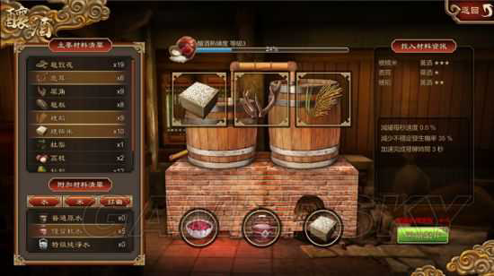 接下来可自由放入喜欢的酿酒材料,酿酒过程中,玩家要挑战如何为品质把关,酿酒时控制火候就相当重要,此时便考验玩家的控温平衡力,火候适中才能酿出美酒。