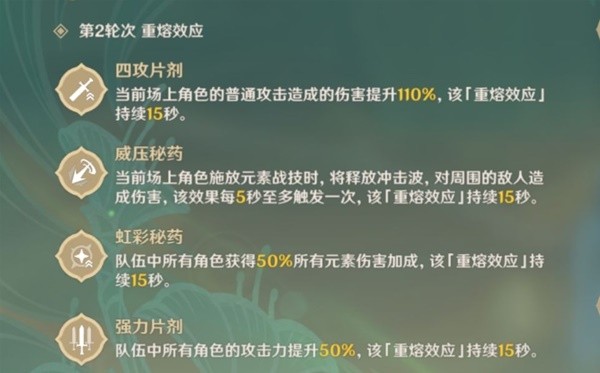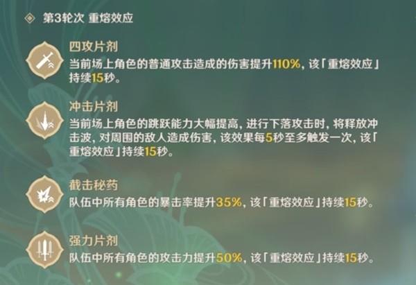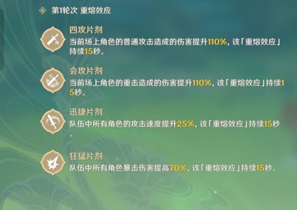 在战斗之中,可以使用「重熔装置」激活「重熔效应」,可在短时间内随机获得一至多种增益。