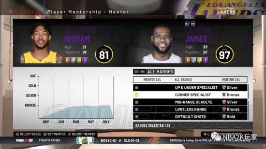 当年轻球员进入NBA时,优秀的球队会确保他们在更衣室里有一个经验丰富的老鸟来指导新球员,确保他们以正确的方式打球。在NBA 2K19中,增加了一个新的球员指导功能,允许你为你的团队中的任何球员分配一个导师,以尝试定制该球员的发展方式(通过他的徽章)。在联盟的前四到五年里,球员的学习能力达到了顶峰,在游戏中他们也将体验最快速的成长。玩家在自己的位置(PG,SG,SF,PF,C)中从相应位置老鸟那里学当然是最好的。如果你指定J.J. Redick为Joel Embiid的导师,它自然会限制Embiid能够学习的技能数量(因为他们模板完全不同而无法学习Redick的一些技能)。另一方面,如果你把Lonzo分配给隆多……结果自然你懂的。这给我们的游戏模式增加了一个有趣的发展,如果碰巧有一个年轻的新星在等着你,最好球队中有一名经验丰富的球员指导,这样就可以把你想要的技能传给年轻球员。CPU的团队今年也将利用这个新特性。他们将一直积极地追求球员,帮助他们培养年轻的明星才能。
