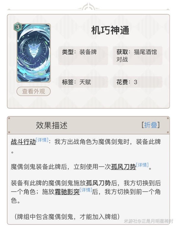 最后需要说道说道的就是这张魔偶剑鬼的角色技能卡了。