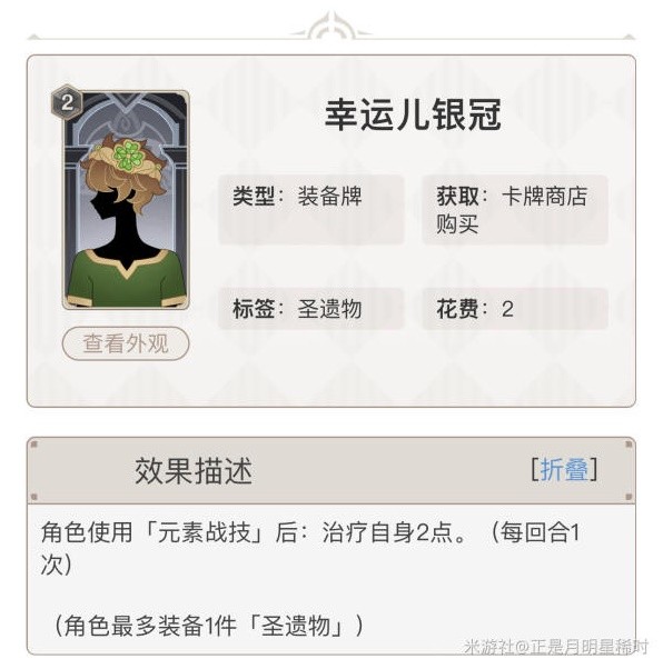 这个圣遗物最大的优点是他的即时性和突然性。能即时回血的料理卡每个角色每轮只能吃一张;而角色技能的回血是双方摆在牌面上的情报,没有突然性。