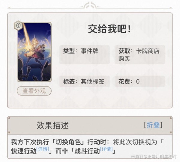 2.此牌打出后每次使用元素战技都必须把剑鬼切到后场,无法自己选择留在前场。