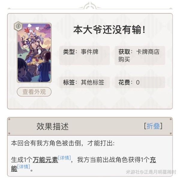 这就使得该卡本就不多的打出时机少了一半。首先,使用这张牌的时机必然是想让剑鬼打完就跑,而不是连续在前场放技能。其次,想要打出角色技能卡,就只能使用风奥兹,如果对手当前的站场角色没有挂元素,那就是扩散了个寂寞,非常难受。