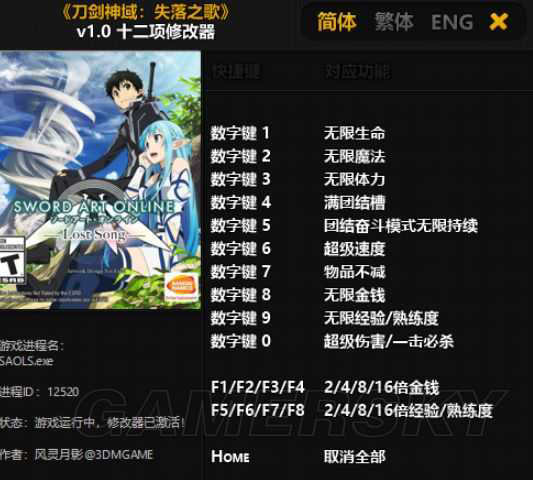 《刀剑神域失落之歌》对于新手玩家来说难度还是不低的,想快速通关或者看剧情的话,使用修改器无疑是最快的,下面小编带来“风灵月影”分享的《刀剑神域失落之歌》修改器及使用方法,赶紧来看看吧。