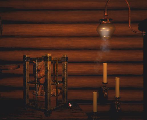 第一次失败前的可以解密物品都互动过了之后把木门旁边的烛台拿起,放在牌桌前然后坐下继续打牌。